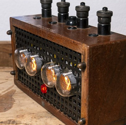 Das Gehäuse eines alten Weckers, einige Zahnräder und viel Fei- und Lötarbeiti – kombiniert mit einem Uhrwerk aus China, einer IN-8 Nixie-Röhre und ein bisschen Elektronik um es mit einer 3V-Batterie zu betreiben. ...